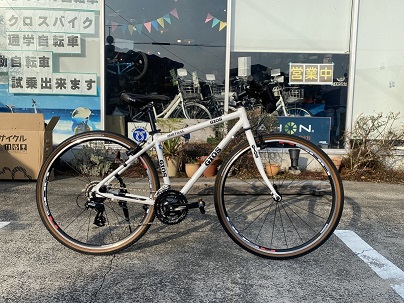 「GIOS ミストラル ホワイト グラベル仕様) タイヤサイズ38c サイズ430 適応身長165cm前後 タイヤは太目でをブッロクパターンとなります。 走りも良いです。 |