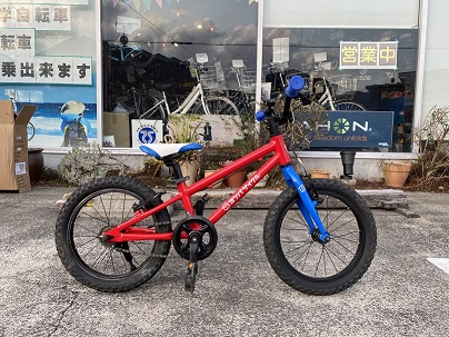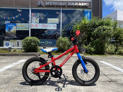 | 「ヨツバサイクル 16インチ」 小学1年生程度 初めての自転車の練習にもご利用ください。 軽量なので乗りやすいです。 ※16インチは2台貸出可能です。 |